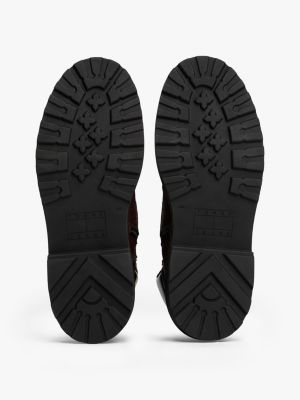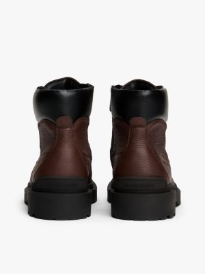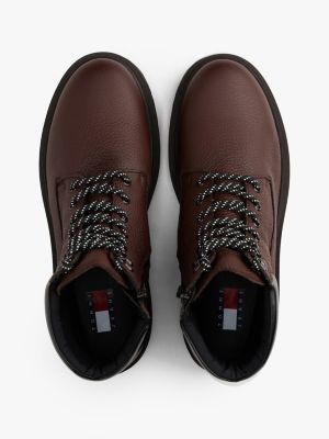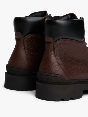 Ces bottes polyvalentes en cuir s'enfilent facilement grâce à une fermeture Éclair sur le côté. Les lacets mouchetés ton sur ton rappellent l'esthétique outdoor.