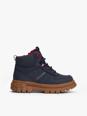 Un drapeau bien en vue et une semelle crantée robuste donnent à ces bottines à lacets un look audacieux qui attire le regard.