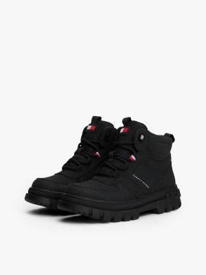 Un drapeau bien en vue et une semelle crantée robuste donnent à ces bottines à lacets un look audacieux qui attire le regard.