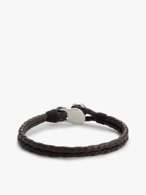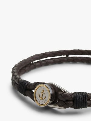 Ce bracelet sophistiqué en cuir marron tressé est rehaussé de détails en métal poli plaqué or. Il ajoutera une touche de style nautique à vos looks.