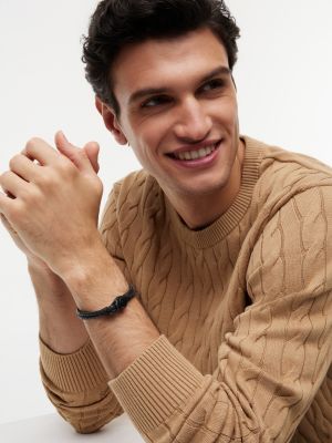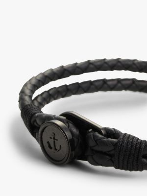 Ce bracelet en cuir tressé noir se pare d'une breloque nautique ton sur ton. Il apportera une touche d'élégance emblématique et discrète à votre collection d'accessoires.