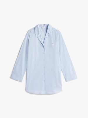 Pour une approche classique des tenues de nuit, misez sur cette chemise de nuit en popeline rayée. Elle se distingue par un col à revers crantés, des boutons emblématiques et des manches longues resserrées aux poignets.