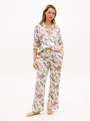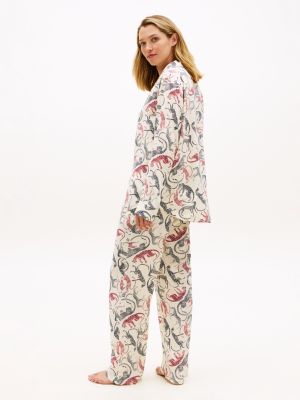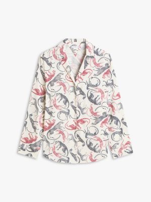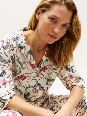 Cette chemise de pyjama classique en tissu fluide associe un col intemporel et un motif imprimé accrocheur.