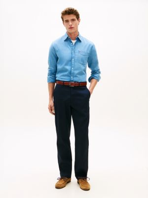 Un tissage alvéolée donne de la structure et de la texture à ce chino droit en coton extensible de façon à créer une silhouette sophistiquée.