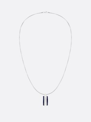 Ce pendentif minimaliste, suspendu à un collier chaîne en acier inoxydable, comporte un logo monotype Hilfiger bordé d'émail bleu.