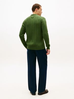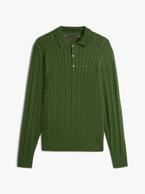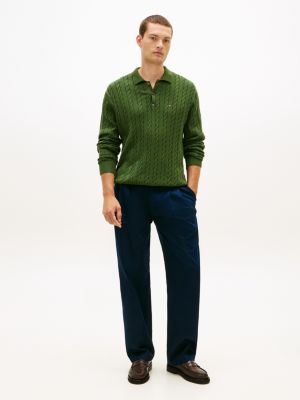 Associant col polo et maille torsadée, ce pull en pur coton peigné évoque le style preppy.
