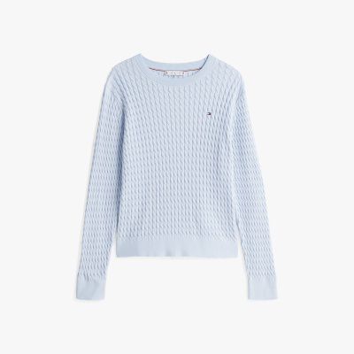 Ce pull confortable en pur coton est confectionné en fine maille torsadée et présente une finition légèrement texturée.