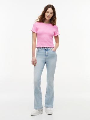 T-shirt coupe slim à drapeau smocké brodé