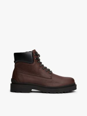 Bottes en cuir grain fin crantées à lacets doublure chaude